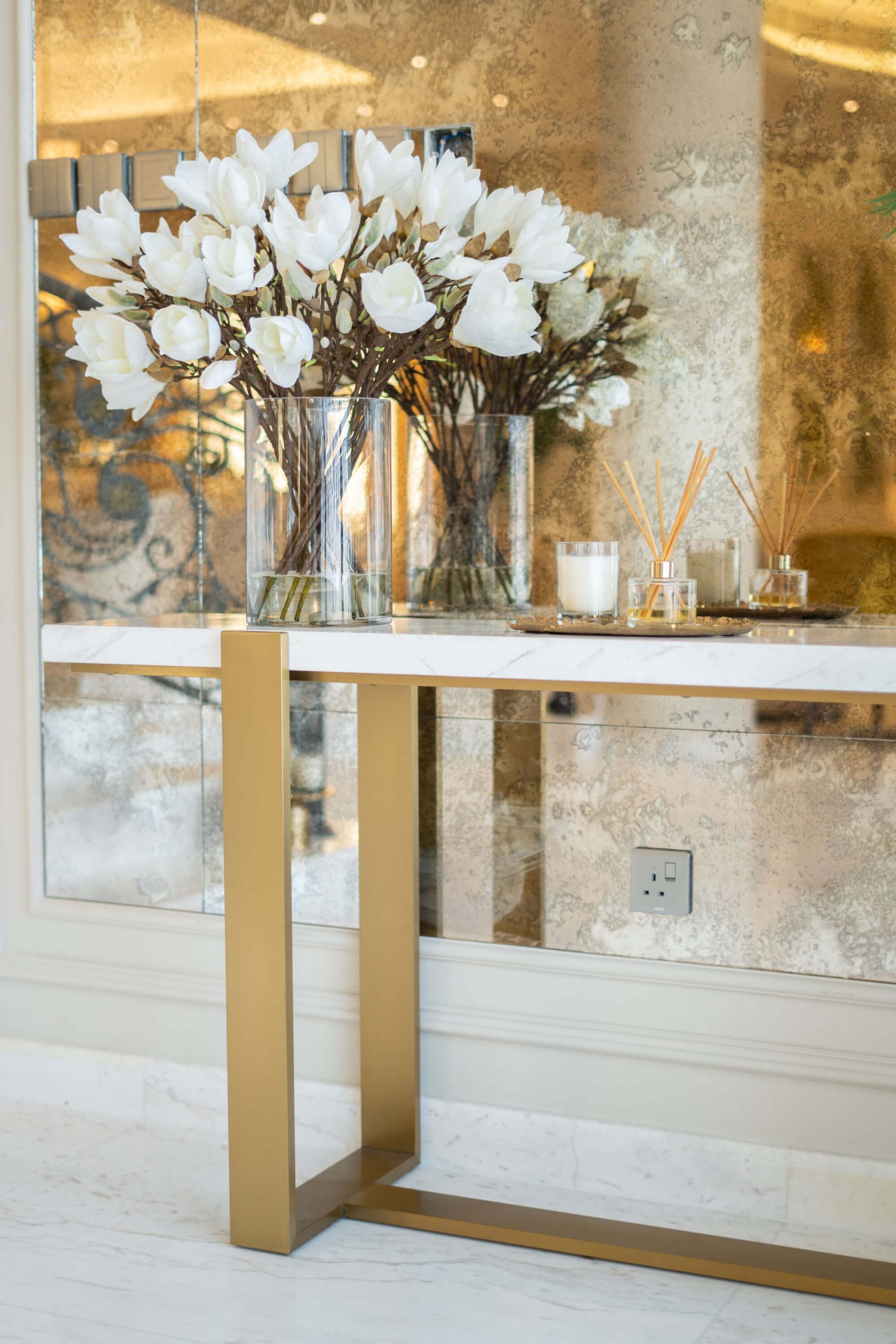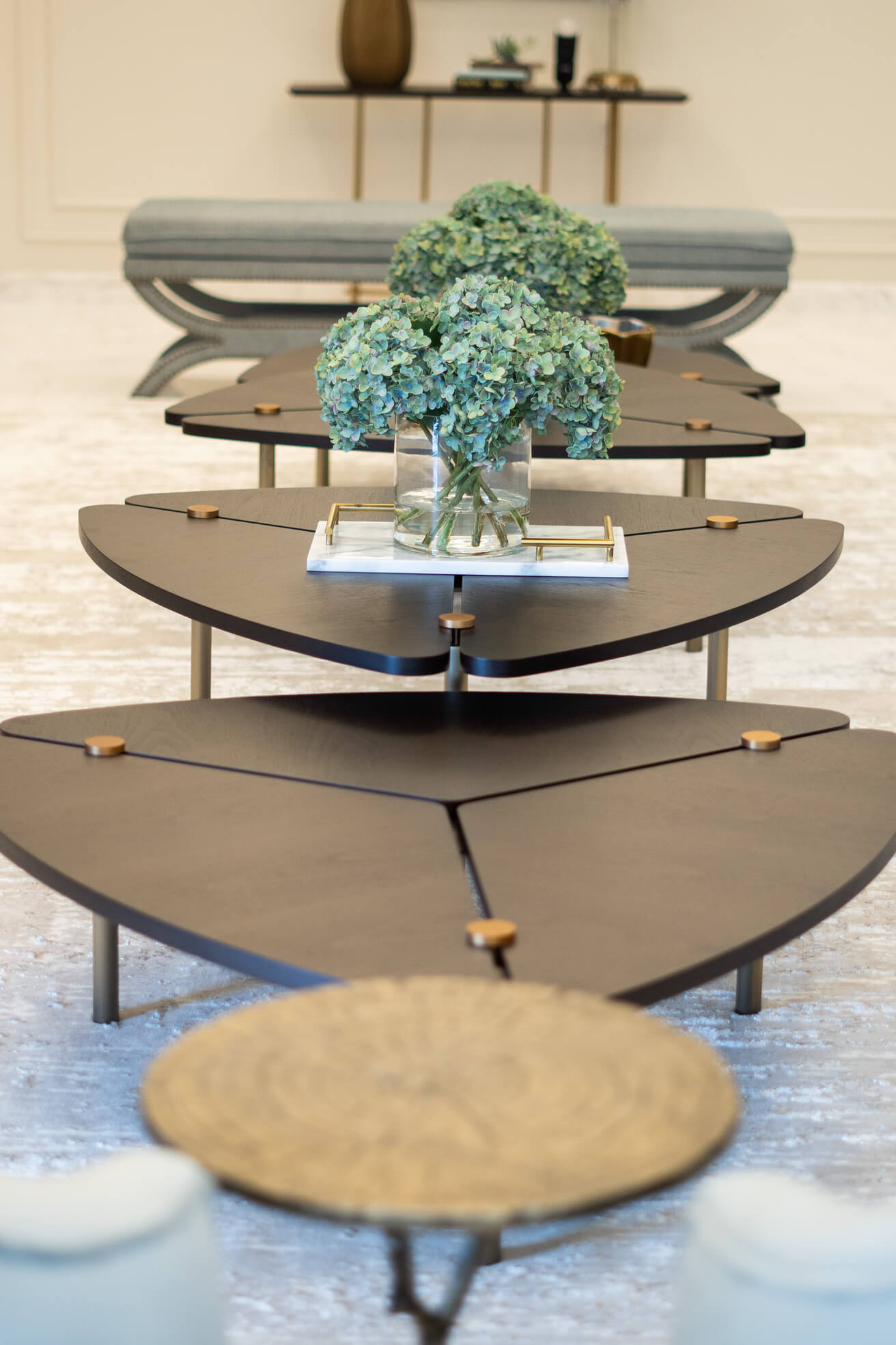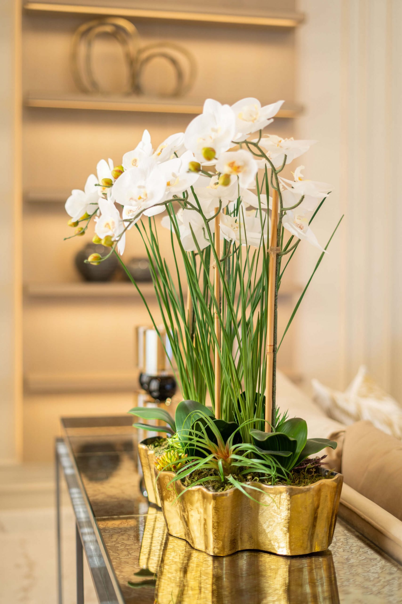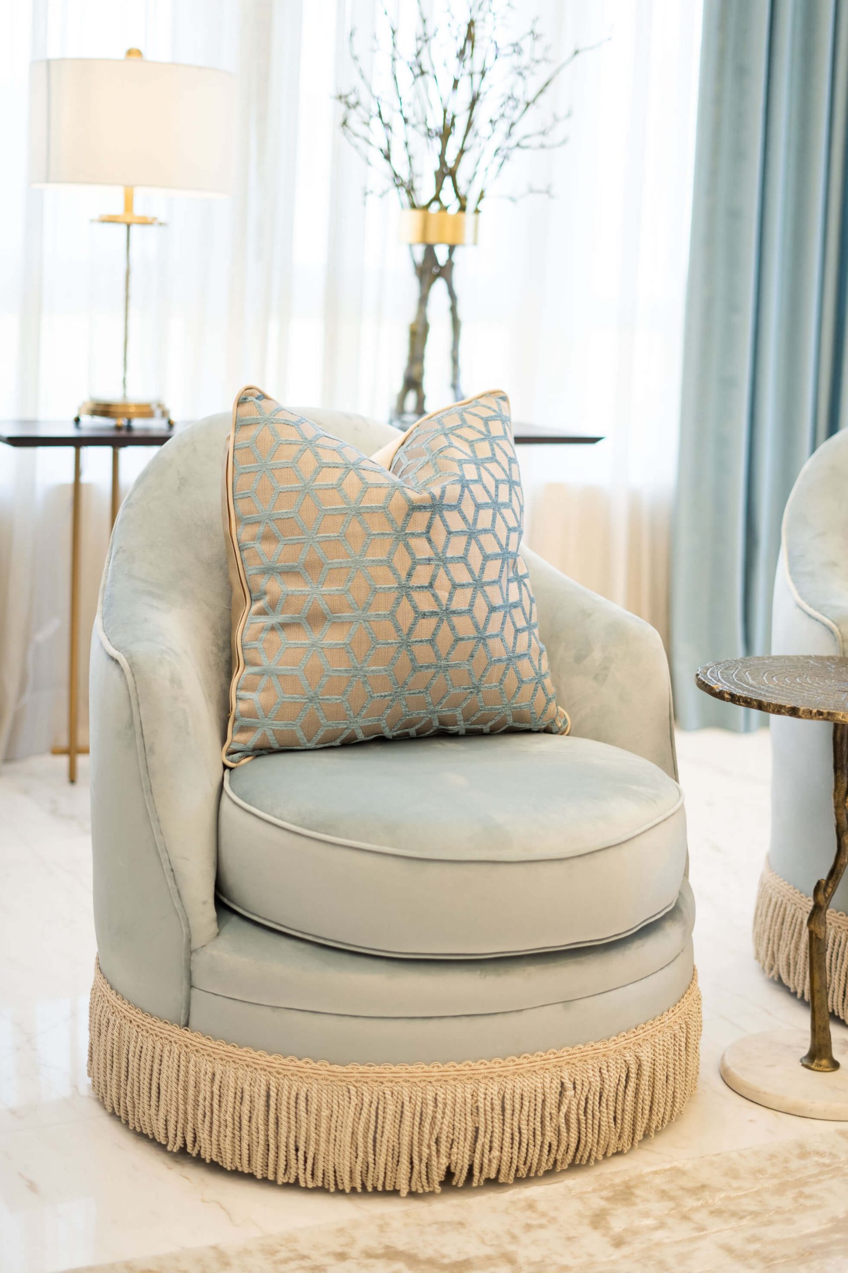 عندما اقتربنا من تجديد غرفة المعيشة في الفيلا، عملنا عن كثب مع العميل وقررنا أنه من الأفضل إعادة هيكلة المساحة لجعلها صالحة للعيش للعائلة. قمنا أيضًا بإعادة إنشاء وتجديد مساحة تناول الطعام لإضفاء مزيد من الجاذبية الرسمية. تم تصميم كلتا المنطقتين بألوان ترابية ، واللعب باللون البني والأصفر والرمادي ولمسات من الذهب، مع الحفاظ على شعورها المحايد والهادئ.