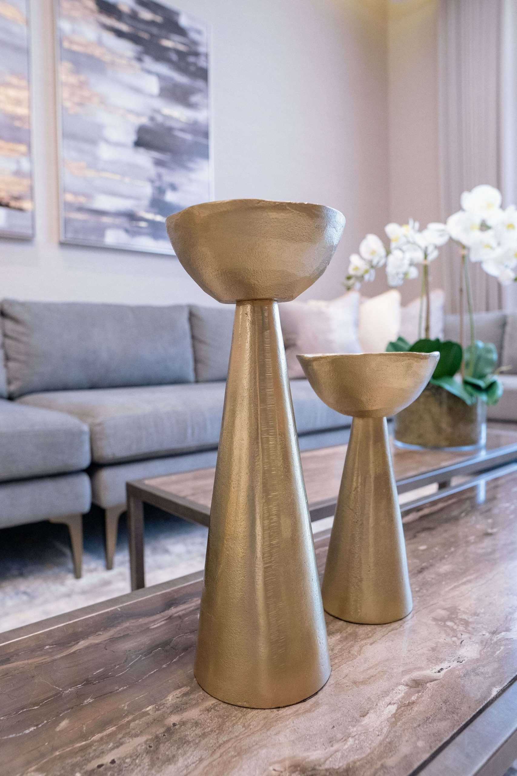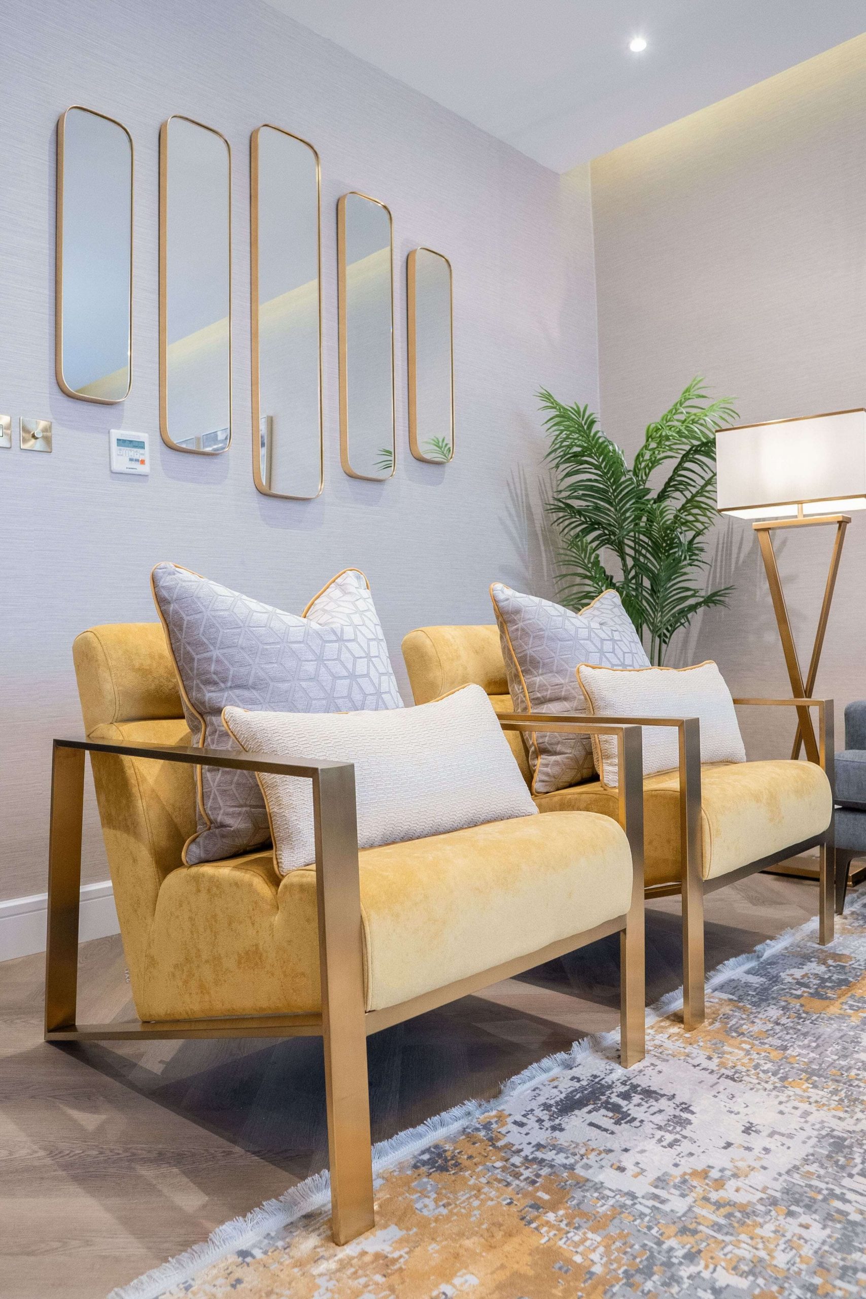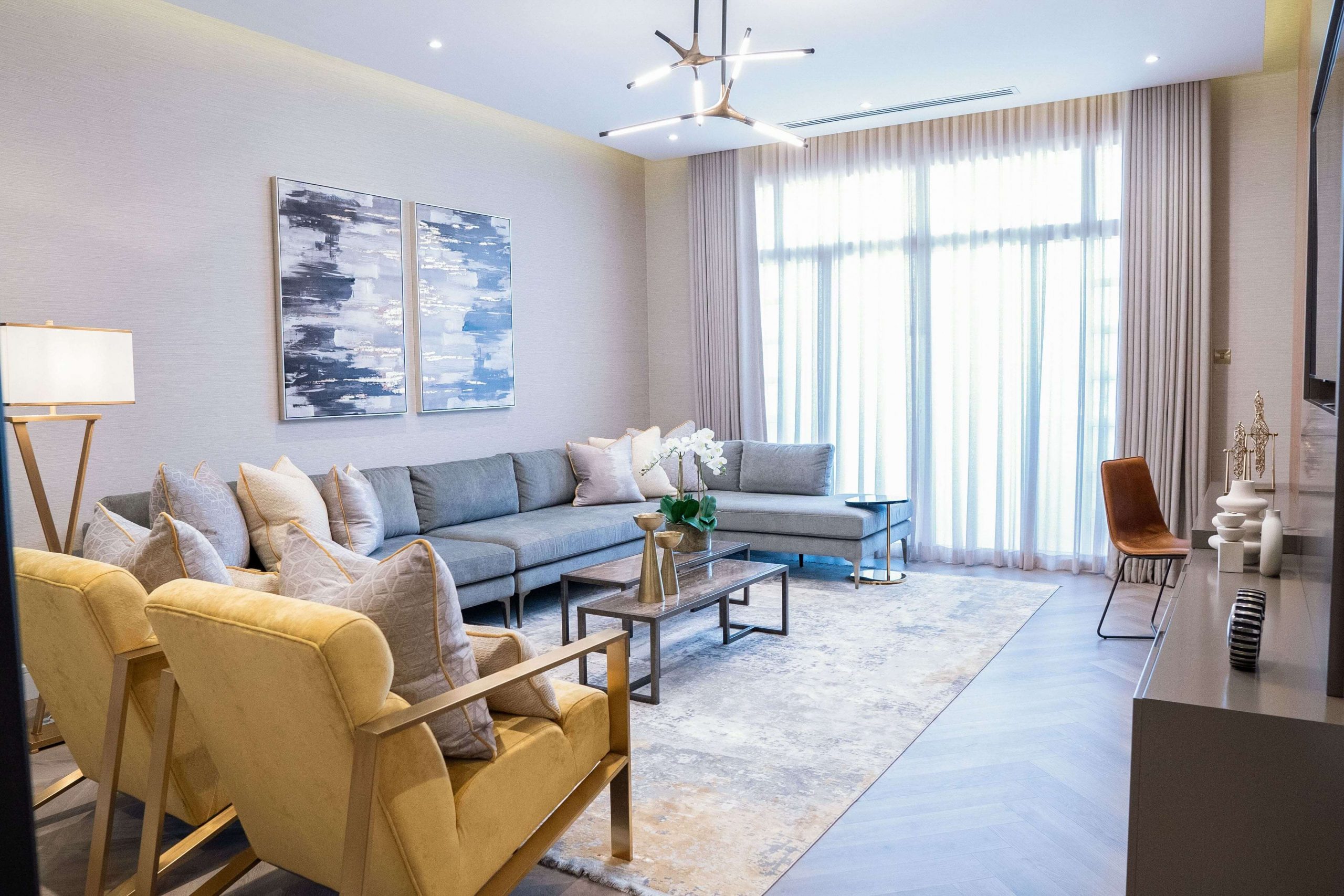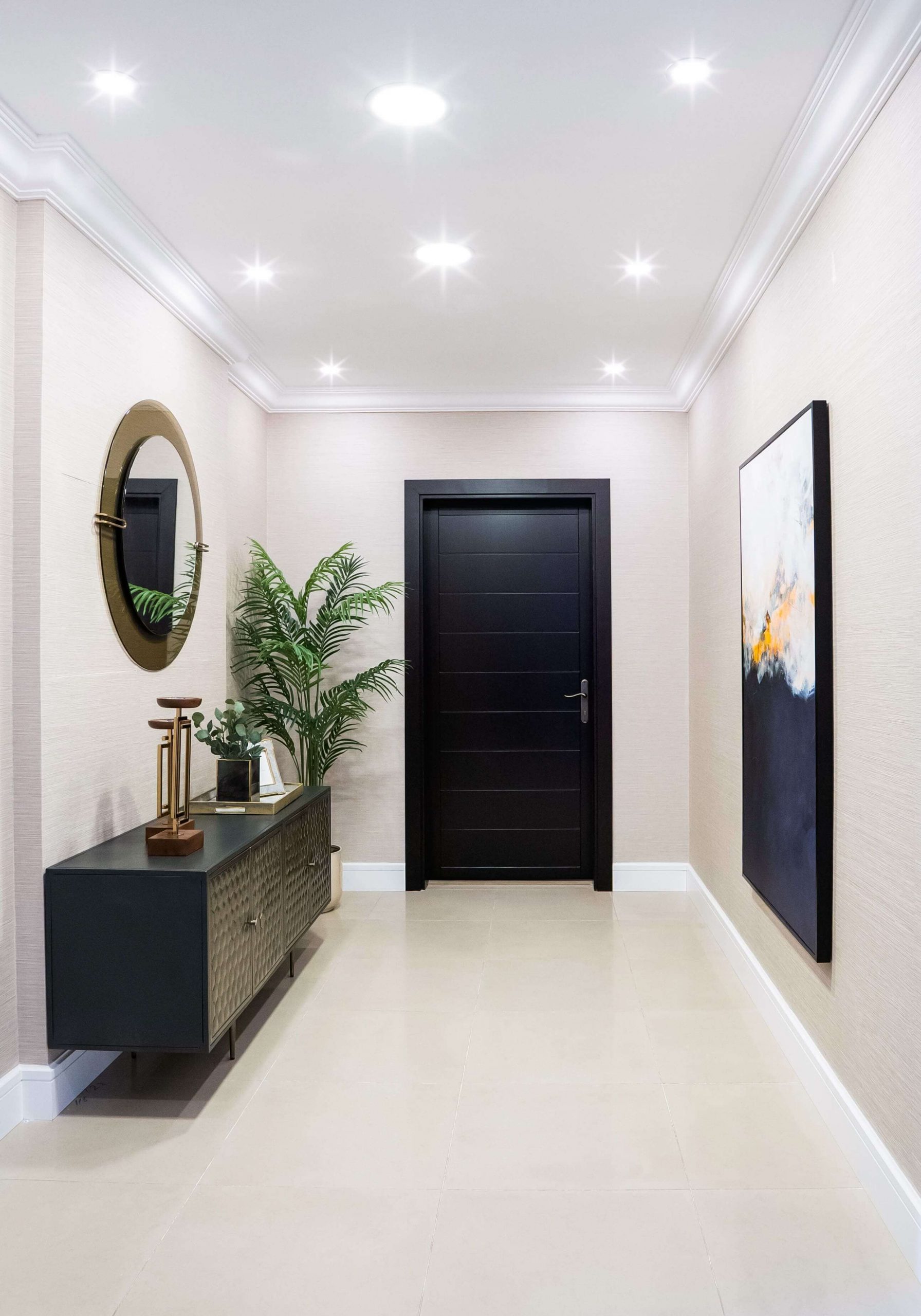 حولنا العديد من غرف نومه إلى غرفة معيشة حيث يريد المالك تخصيص مساحة أكبر للترفيه عن الضيوف في لقاءاته. بالإضافة إلى ذلك، قمنا بتحويل جزء من الحمام إلى غرفة ملابس لمزيد من المساحة المخصصة للمالك من أجل العناية الشخصية. لإضافة لمسة إلى منزله، قمنا بدمج اللمسات الذهبية في الخطوط الأنيقة من الأسود والأبيض والتشطيبات الصناعية لخلق نمط تصميم حديث إلى منتصف القرن.